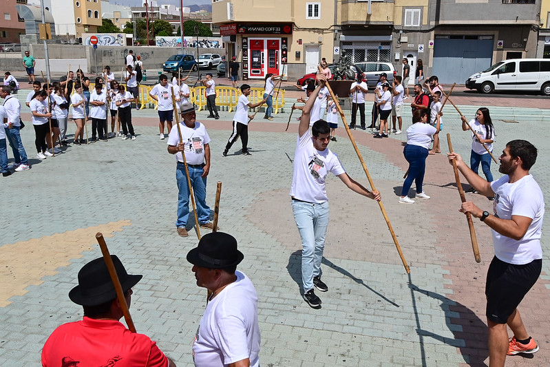 Las Escuelas de Juego del Garrote, apoyadas por el alumnado de centros que desarrollan Proyectos Educativos, como los del IES Las Huesas en Telde o el IES Tamogante en Santa Lucía, pusieron de relieve la salud de esta práctica entre los más jóvenes.