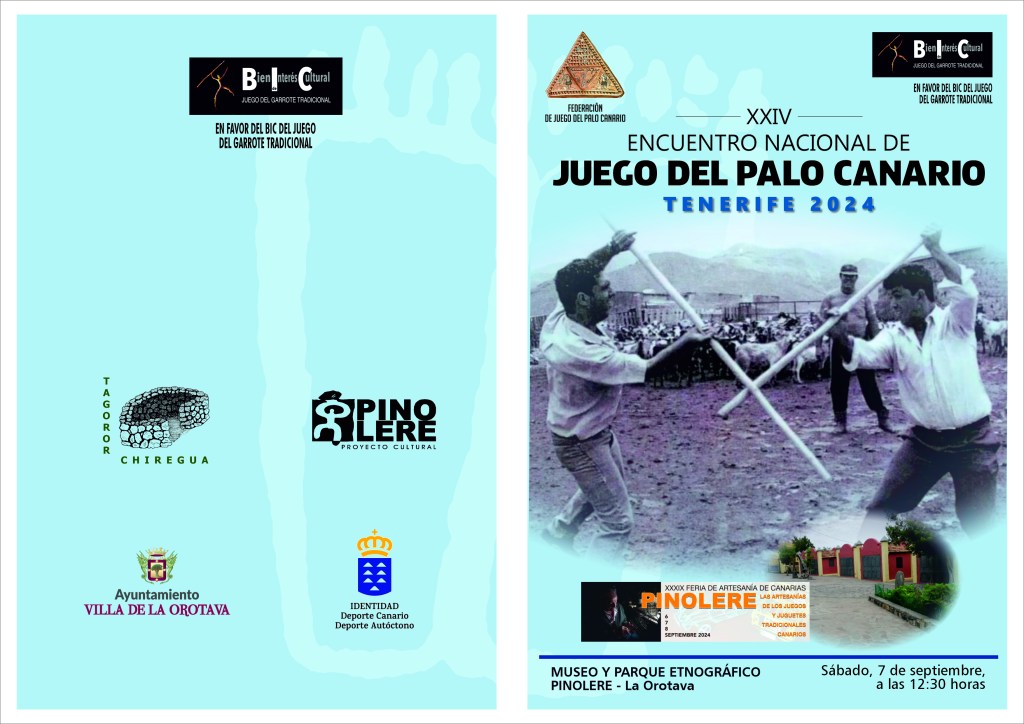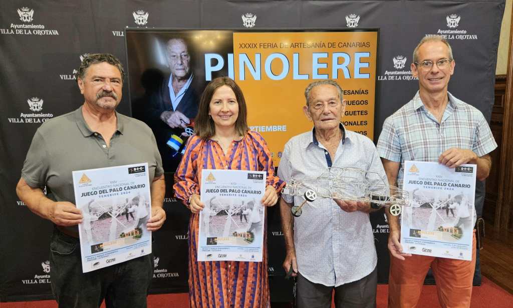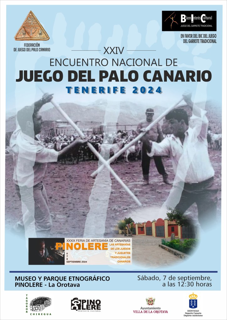 El pasado 1 de agosto tuvo lugar la presentación del XXIV ENCUENTRO NACIONAL DE JUEGO DEL PALO CANARIO, en el salón de actos del Ayuntamiento de la Orotava. Con la presencia de la AÑEPA del rey aborigen BENCOMO, se anunció para el sábado 7 de septiembre, dentro de la FERIA DE ARTESANÍA DE PINOLERE, la edición de este año del ENCUENTRO NACIONAL.