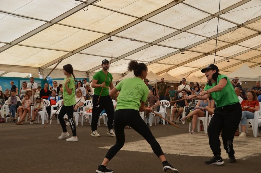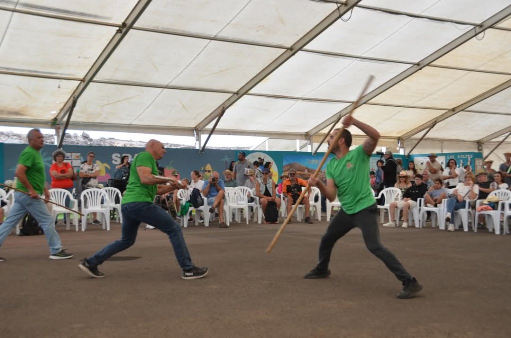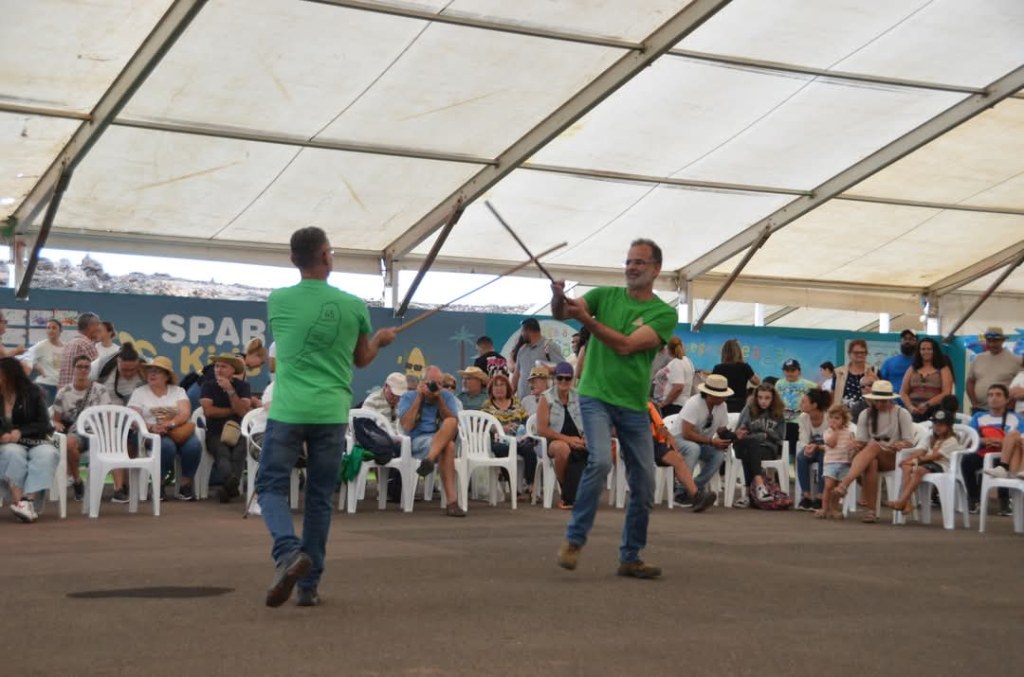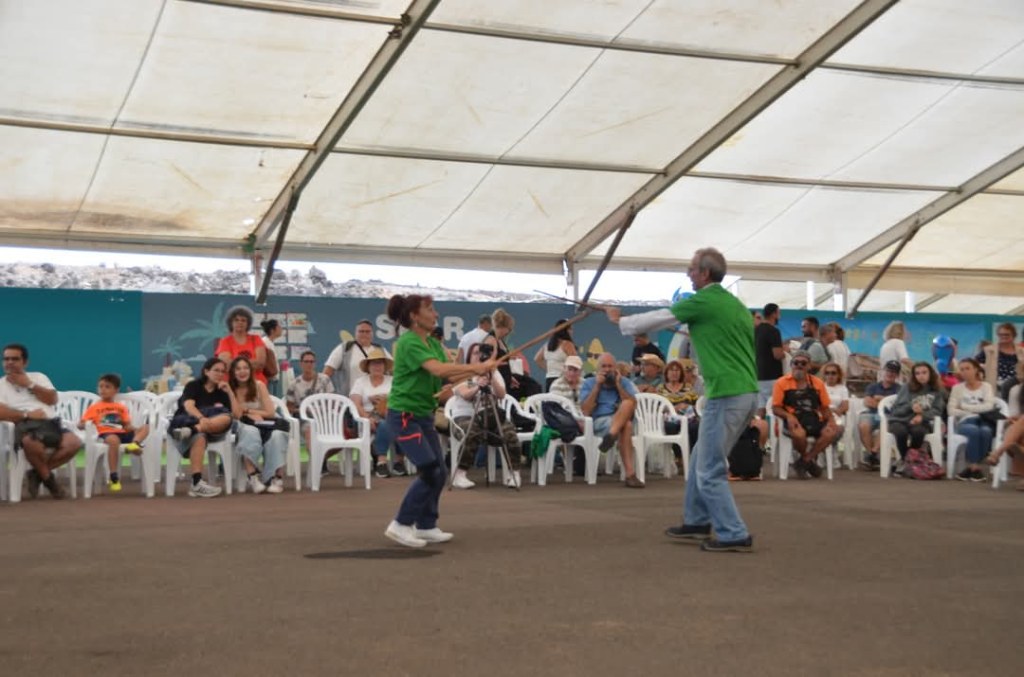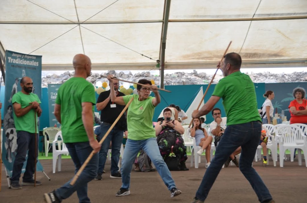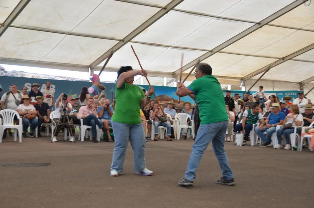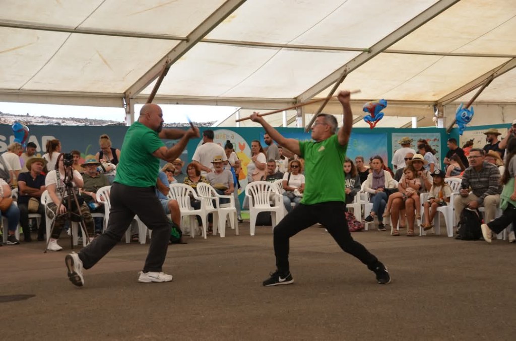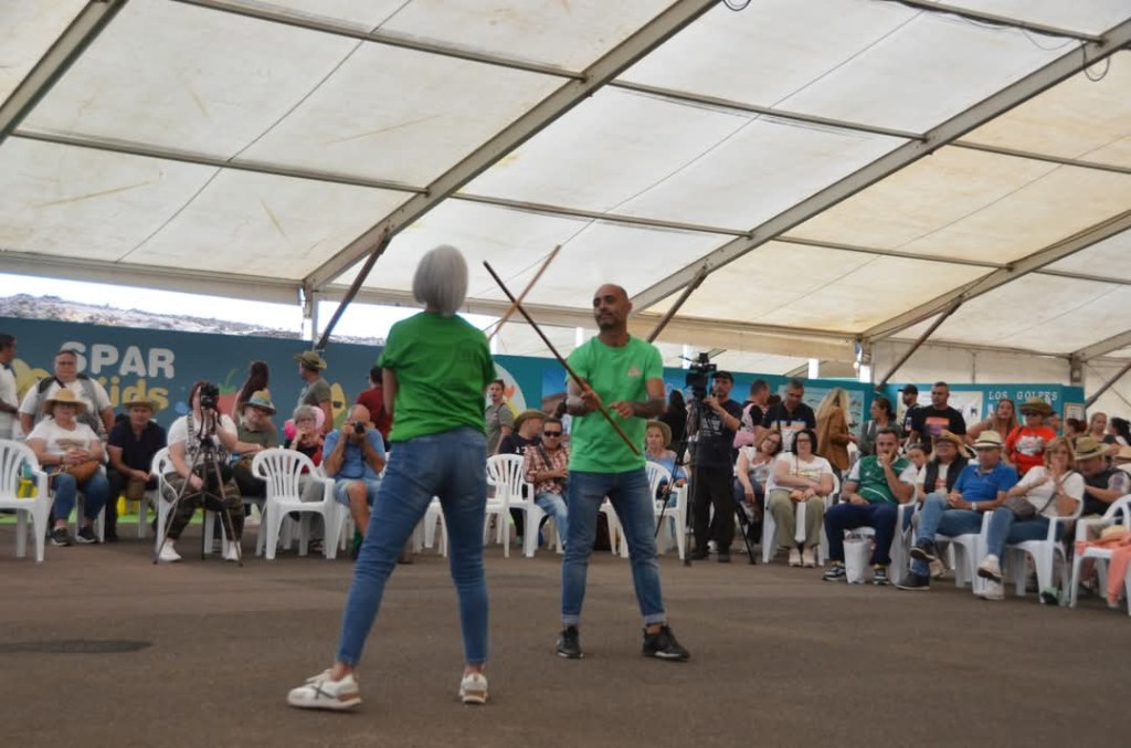 En la exhibición, maestros y jugadores de las Escuela de Palo Canario de Fuerteventura, se culminó no sólo con lo que es una constante de ver padres e hijos jugando juntos, sino que se vio a los abuelos (como ya ocurriera con los Acosta), jugar con sus hijos y nietos, en este caso hijas y nietas.
