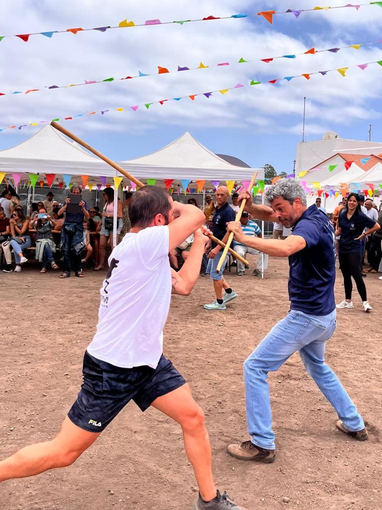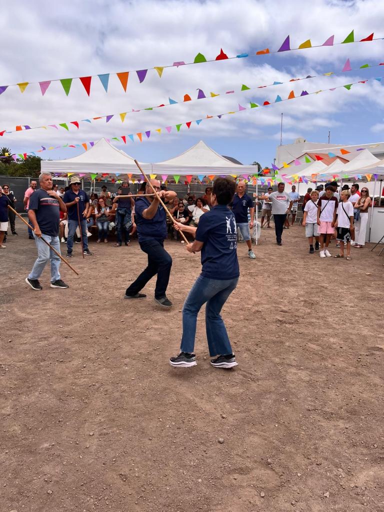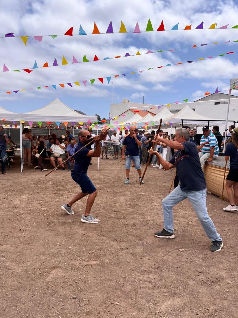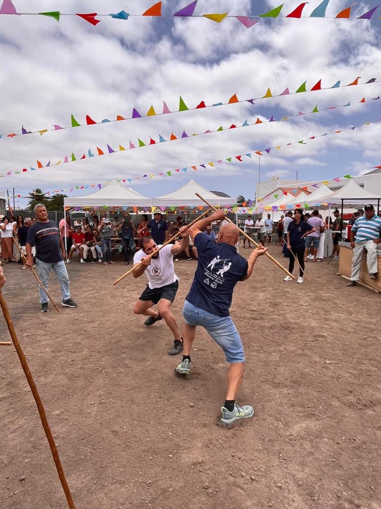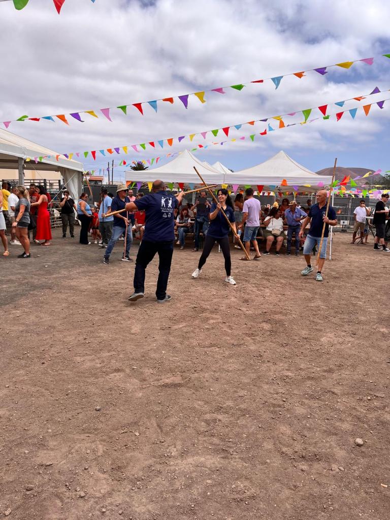 También el resto de las Escuela de Palo Canario de Fuerteventura (Pto. Cabras, Huriamen de Villaverde y Sorinque de Gran Tarajal), conjuntamente con Dunas de Corralejo, han tenido una intensa actividad en estas fechas del DÍA DE CANARIAS. Así han efectuado exhibiciones en los siguientes lugares: Castillo de Caleta Fuste (23 de mayo); Lajares (24 de mayo); Corralejo (26 de mayo); Gran Tarajal (30 de mayo); y nuevamente en Lajares-fiestas de San Antonio (8 de junio). Los maestros federados que participaron fueron los siguientes: Francisco Dorta Castillo, Jose Vera Pérez y Aday Mesa Martín. Estos llevaron a cabo las exhibiciones junto a los jugadores de palo: Laura Negrín Carmona¸ Gustavo Gopar Pérez y Francisco Mederos Felipe.