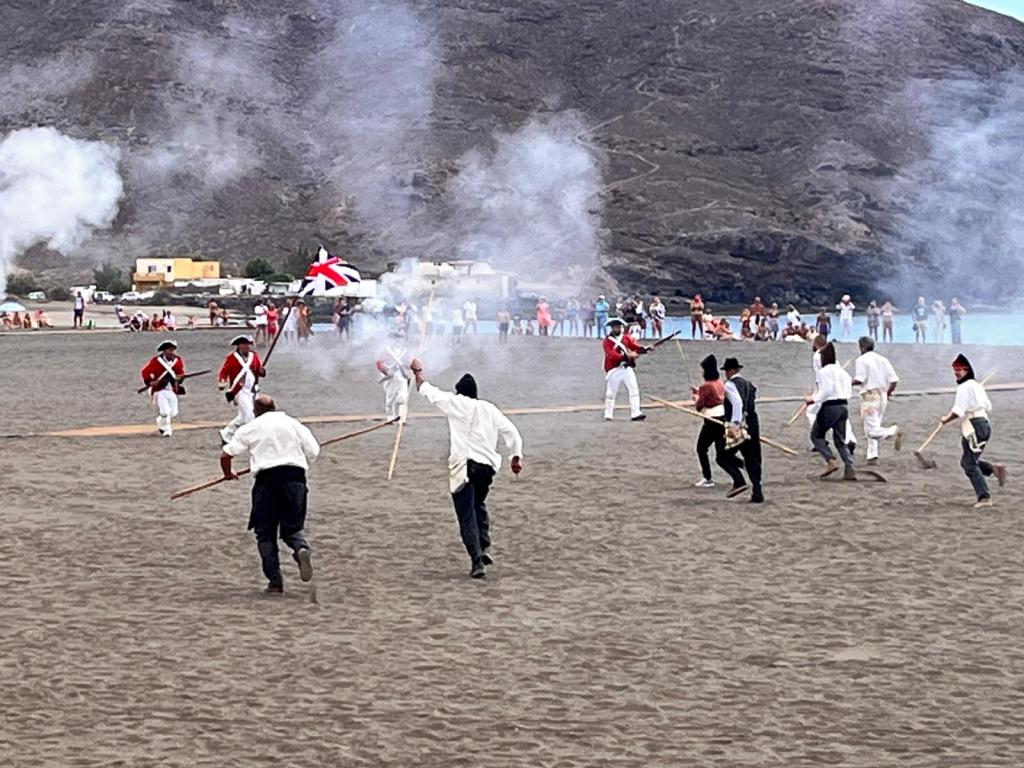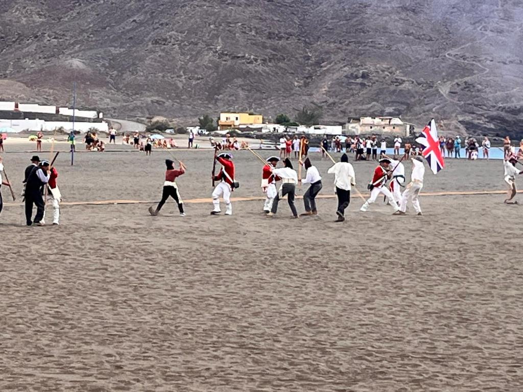 En aquella ocasión se impusieron los majoreros, con palos que recrearon las Escuelas de Palo Canario de Fuerteventura y aunque el desembarco en Gran Tarajal viene aconteciéndose hace años, los jugadores majoreros han participado en esta ocasión, enriqueciendo la puesta en escena de la llegada de los ingleses, antes de tomar camino a Tuineje.