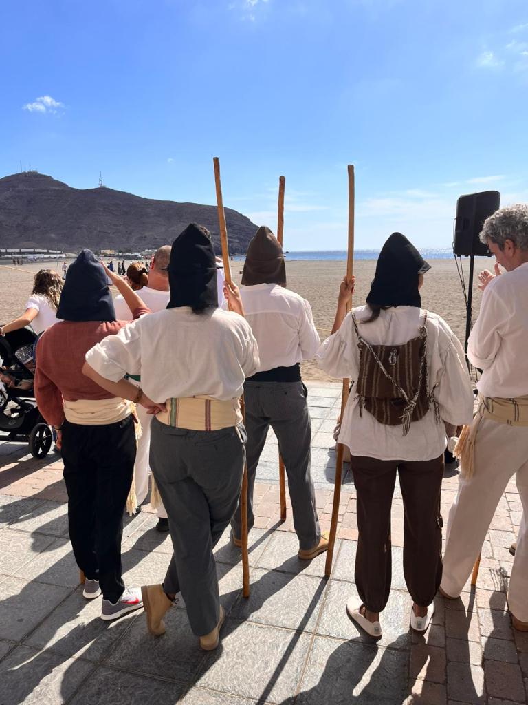 La recreación tiene mucho de exaltación religiosa, de ahí la cantata dedicada a San Miguel. No obstante, los jugadores de palo canario tuvieron una parte importante, rememorando una practica física ancestral, que viene de los aborígenes canarios. Por ello no de extrañar, que la exhibición de la playa resultara conjunta con las técnicas de los palos, ante el arcabuz que supuestamente traían los ingleses, en la avenida de Gran Tarajal.
